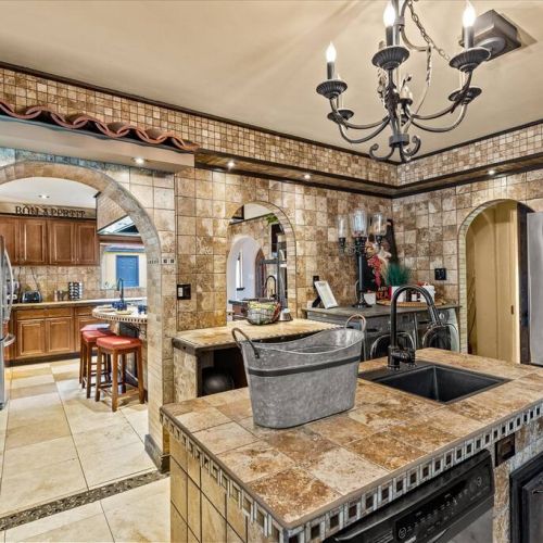 Lg double chef’s kitchen w/center islands & built in grill. Basement bar w/pool table. Sunken living/dining room w/gas fireplace.