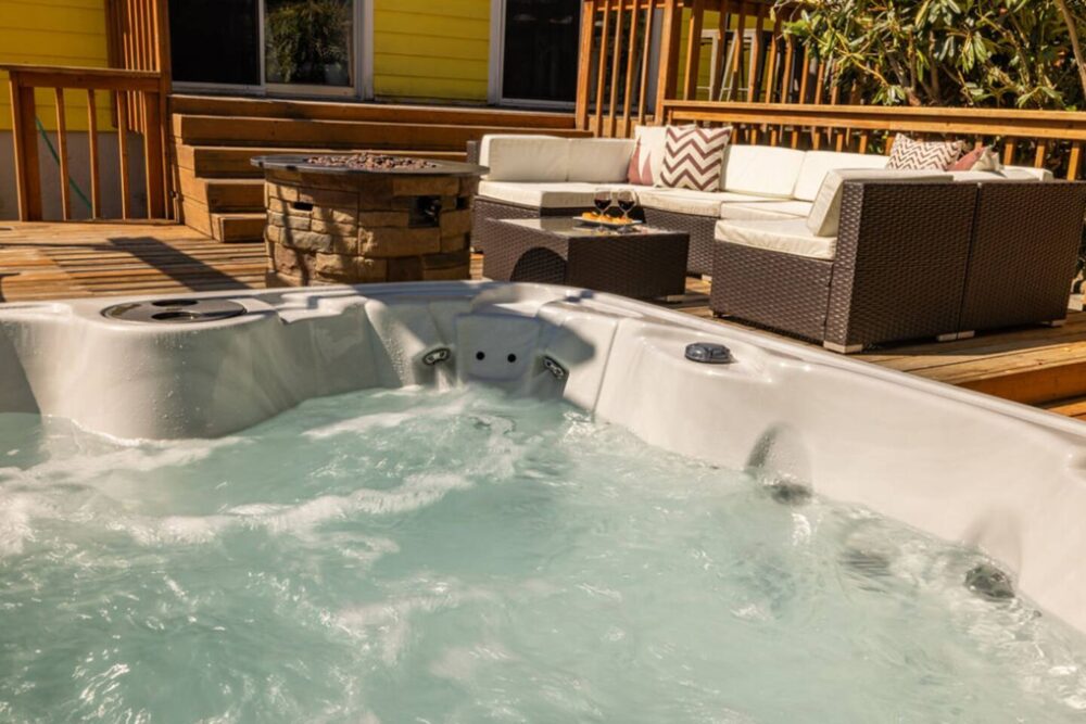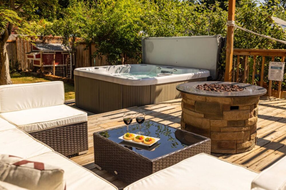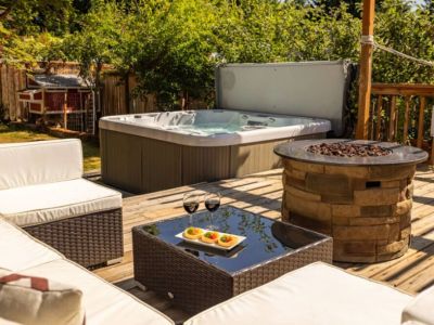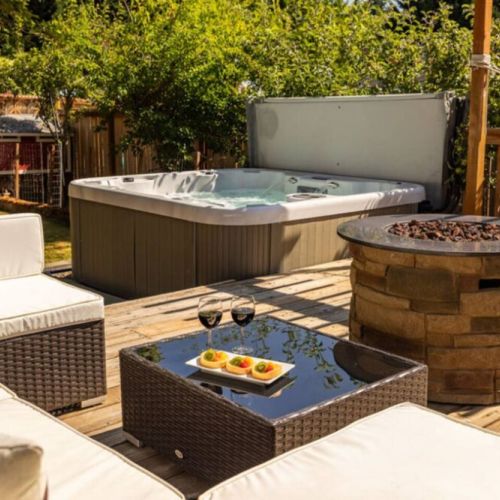 The backyard is fully fenced for the kiddos and pups. The large 6 person hot tub is the perfect place to unwind after a day of exploring the beautiful Pacific Northwest.
