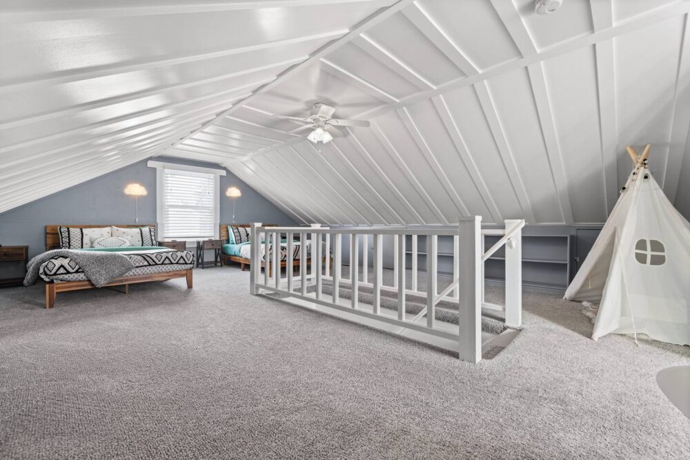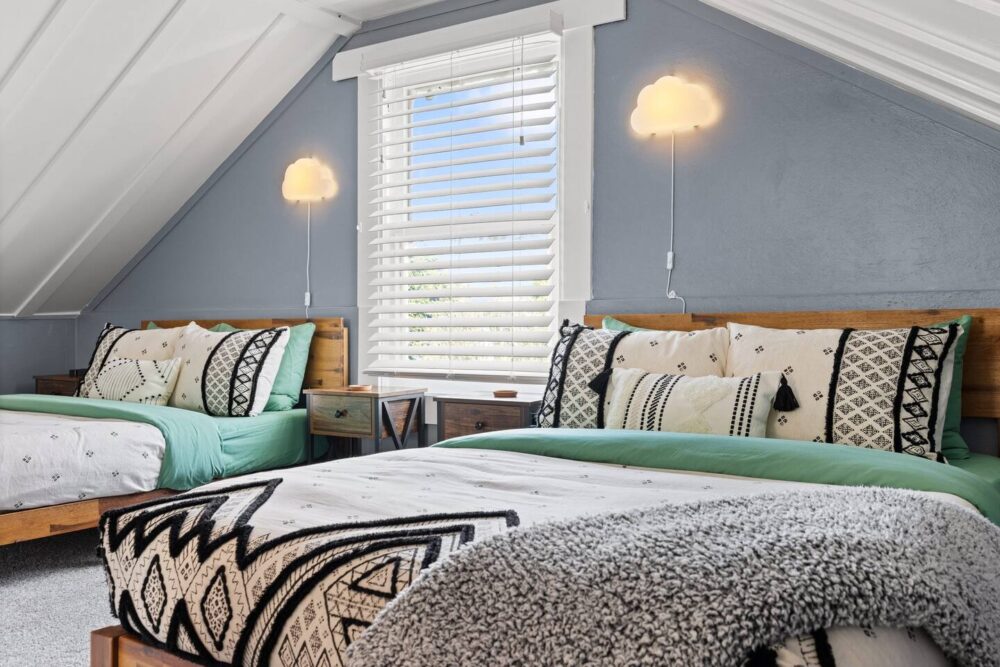 You will have access to the entire house. You’ll have use of 4 bedrooms (2 queen beds, 2 twin beds and 2 full beds). There are 2 full bathrooms (1 with a bathtub, 1 with shower). One of the Queen bedrooms and the Twin bedroom (2 twins with trundle bed) and one bathroom are located on the main level. The 2 Full beds can be found upstairs in our "Kids loft" though adults are welcome to stay and find their inner child in this sweet space. The other Queen bedroom is located in the basement.