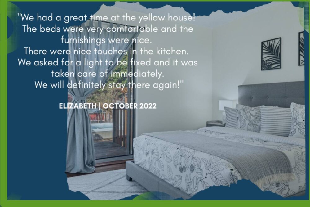 The yellow house was great. It fit our family of 6 perfectly. It was well stocked with anything you needed. I would stay here again if we had anther occasion in the area.
