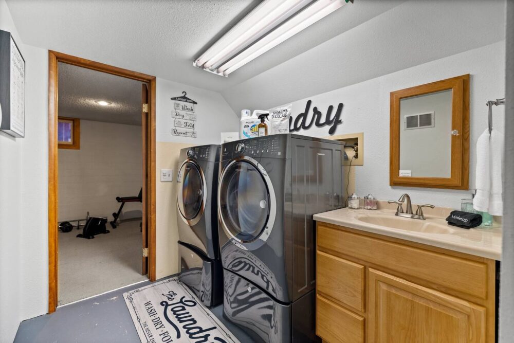 There is a laundry room and "Game Room" are located in the basement which offers lots of area for your family to spread out.